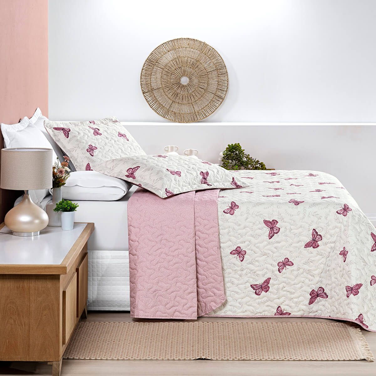 Cobre Leito Solteiro Avere Dupla Face 200 Fios em Matelassê - BorboletaLançamentoToque MacioInvernoDupla FaceDois estilos em uma peça! Cobre Leito Solteiro Avere dupla face (floral e liso) com a elegância do acabamento em matelassê. Decore com versatilidade. 01 Cobre leito 2,40m x 1,80m01 Porta travesseiroComposição: Superior e Inferior 100% PoliésterEnchimento: 100% PoliésterSOLTEIRO a partir de