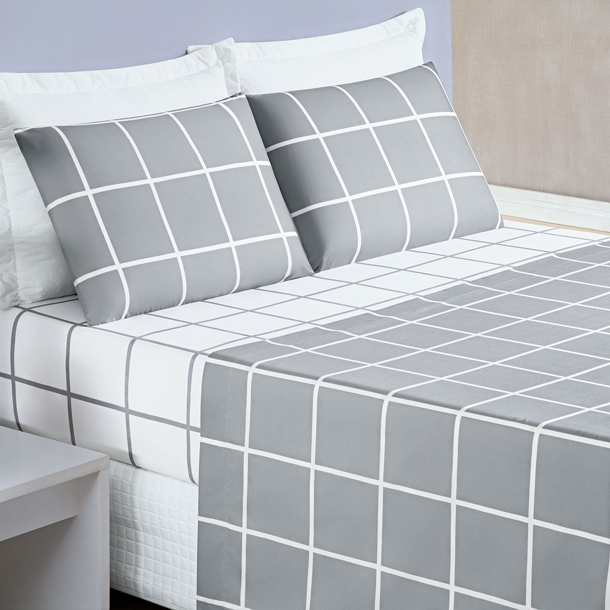 Jogo de Lençol Casal Austin 4 Peças Look Completo e Sofisticado - CinzaCrie um visual de impacto na sua cama de casal. Jogo de Lençol Austin 4 peças com a elegância da estampa quadriculada e o toque macio do tecido 200 fios. 1 Lençol de Cima 2,40cm x 2,20cm1 Lençol com elástico 1,88m x 1,38cm x...CASAL a partir de