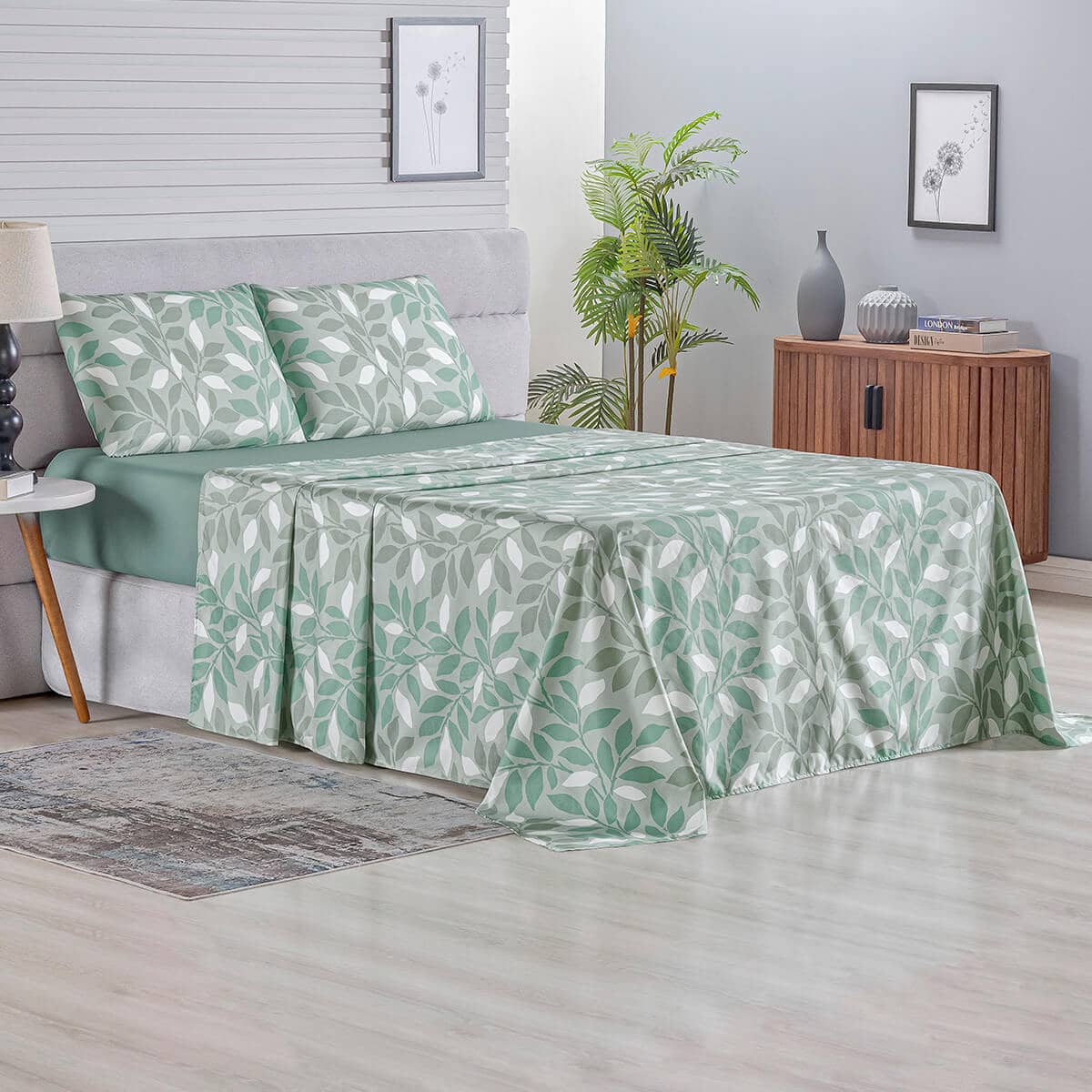 Jogo de Lençol Casal Aurora Completo 4 Peças Cores que Duram - Verde400 FiosTenha a cama de casal dos sonhos com o Jogo de Lençol Aurora 4 peças. Cores que não desbotam, toque macio e o charme do ponto palito. Não faz bolinha! 01 Lençol de cima 2,45m x 2,20m01 Lençol de baixo com elástico 1,88m x...CASAL a partir de