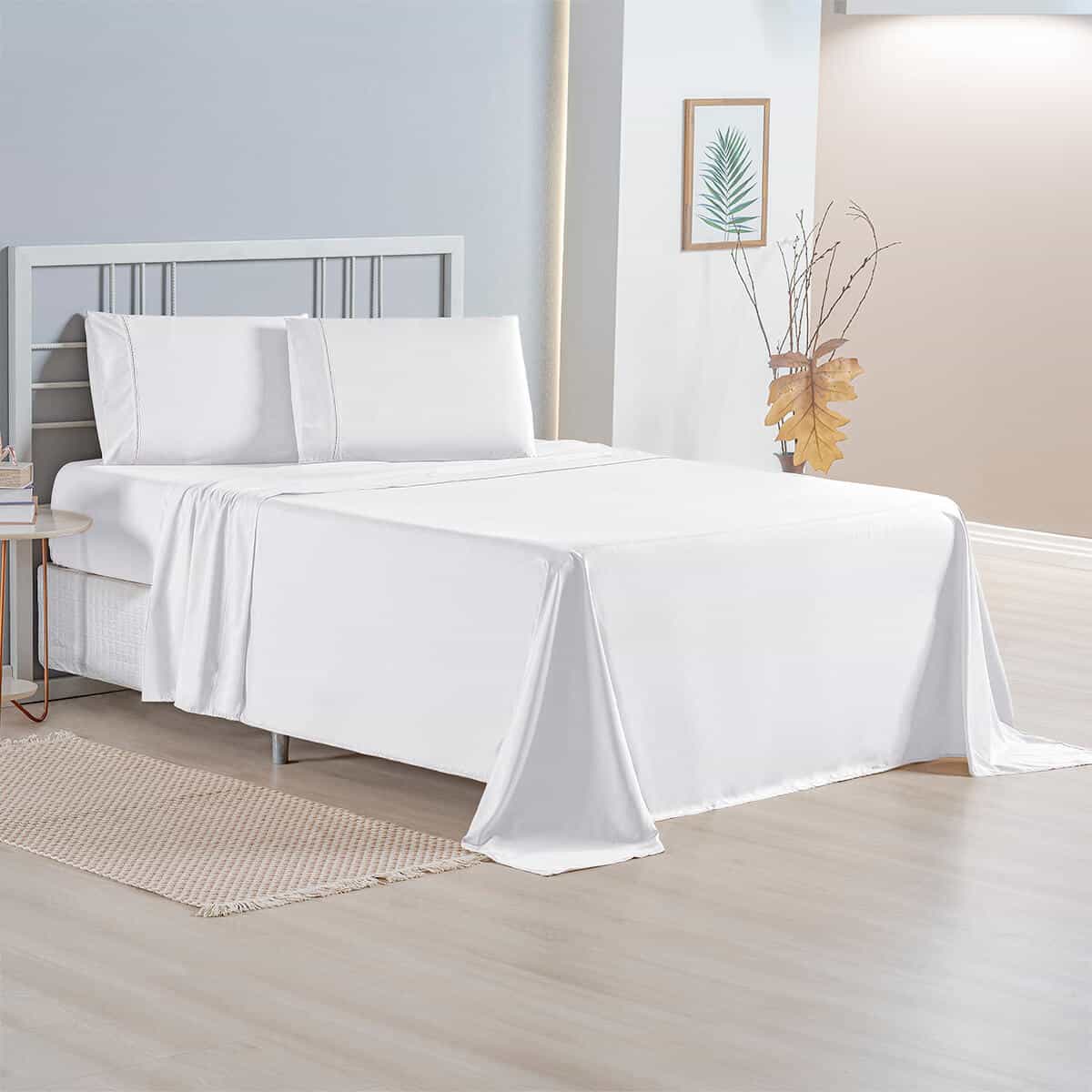 Jogo de Lençol Casal Camilly com Ponto Palito Elegância Minimalista 4 Peças - Branco400 FiosMais VendidosA solução completa para uma cama de casal sempre elegante. Jogo de Lençol Camilly 4 peças com toque macio, cores neutras e acabamento em ponto palito. 01 Lençol de cima 2,45m x 2,20m01 Lençol de baixo com elástico 1,88m x 1,38m x 30cm alt.02...CASAL a partir de