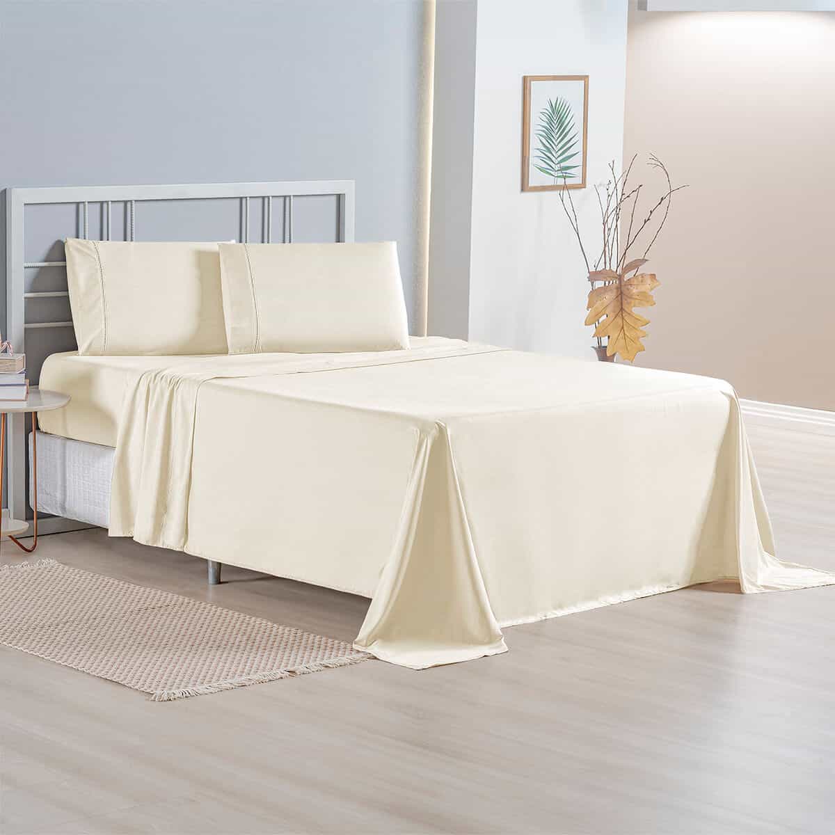 Jogo de Lençol Casal Camilly com Ponto Palito Elegância Minimalista 4 Peças - Marfim400 FiosMais VendidosA solução completa para uma cama de casal sempre elegante. Jogo de Lençol Camilly 4 peças com toque macio, cores neutras e acabamento em ponto palito. 01 Lençol de cima 2,45m x 2,20m01 Lençol de baixo com elástico 1,88m x 1,38m x 30cm alt.02...CASAL a partir de